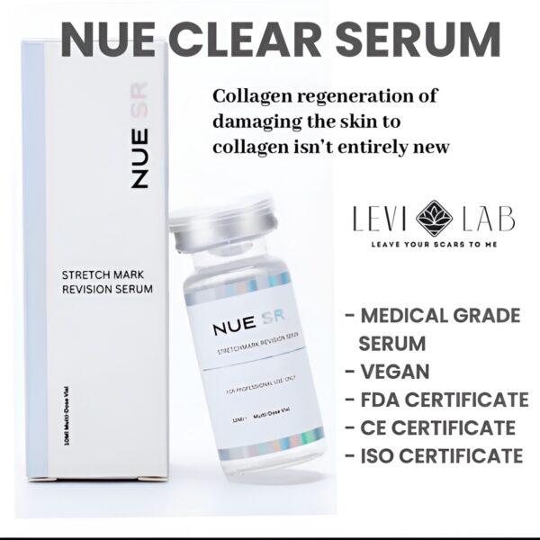 Nue Clear is a medical grade cellular renewal essence. It permanent skin rejuvenation technique stimulates the generate of new cells within depressed scars and wounds , helping to lift and flatten the indented areas.
